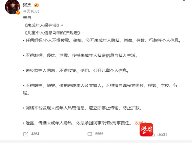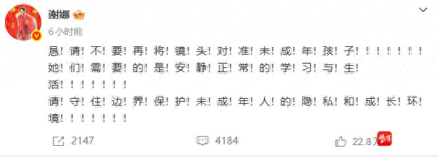 {jz:field.toptypename/}2月25日,“谢娜带双胞胎男儿上课”登上微博热搜,一个八卦自媒体博主上昼发布了关联视频,视频中拍摄了两个孩子的正面。看成母亲的谢娜对此活动暗示了犀利的不悦,在嘱托平台遑急发声,恳切号令外界不要再将镜头瞄准未成年孩子,全文以密集赞佩号分隔字句,累计使用68个赞佩号,表情犀利。随后,张杰也发文抒发气魄,援用了《未成年东说念主保护法》和《儿童个东说念主信息集会保护法例》,对偷拍活动暗示驳诘。