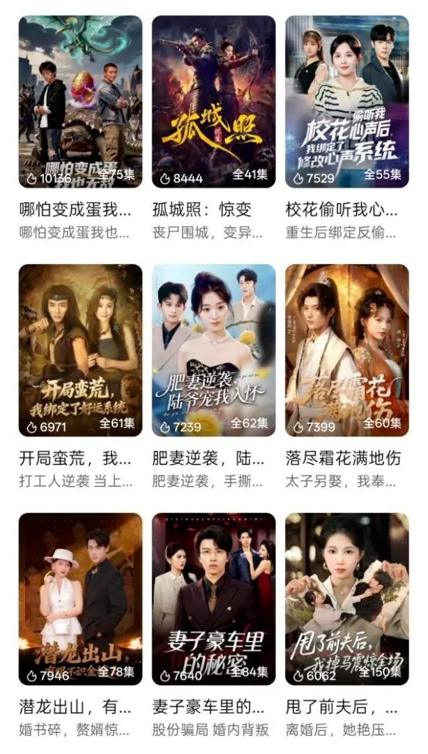 与此同期,腾讯、百度、快手、阅文等头部互联网大厂也已入局该赛谈,或推出孤立漫剧APP,或加紧入库漫剧内容。就在前天,腾讯就推出了旗下首款漫剧孤立App“火龙漫剧”,优爱腾芒等视频平台先后开设漫剧板块。像是腾讯视频,AI仿真东谈主剧《哪怕变成蛋我也无敌》热度一度冲突10136,《孤城照:惊变》也来到8444。而像是《末日深山:房车囤货与生涯之战》为主的末日囤货题材仿真东谈主剧,也相同在短时候内冲突7000热度,在短剧热度榜单中均处于中上游。