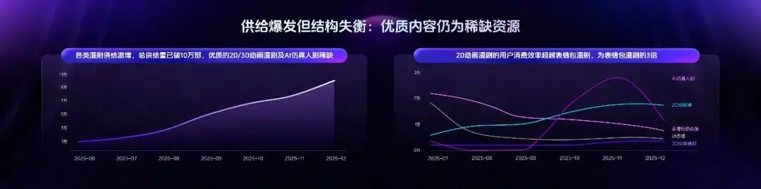 值得一提的是,近期举办的2026巨量引擎漫剧生态大会上,抖音集团短剧版权中台内容息争厚爱东谈主华越昇公布的一则数据炫耀,升天 2025 年底,平台漫剧供给量冲突10万部,AI 仿真东谈主剧的平均播放量最高,且增速最快。