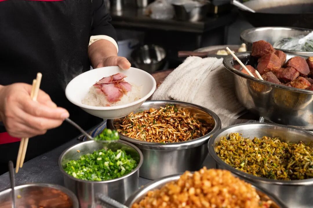 试吃正统的贞丰糯米饭,推选你一定要来兴义的江氏糯米园,琳琅满假想一大碗居然只须10元钱!店内还免费提供6种土产货特质小菜、豆乳、稀饭,品类丰富到让东谈主猜疑雇主何如盈利。在店内小坐半小时,走动门客联翩而至,一位从下属县市专程赶来的小哥告诉咱们:“这种英气配制只可在兴义吃到,一碗下肚管饱到下昼。”