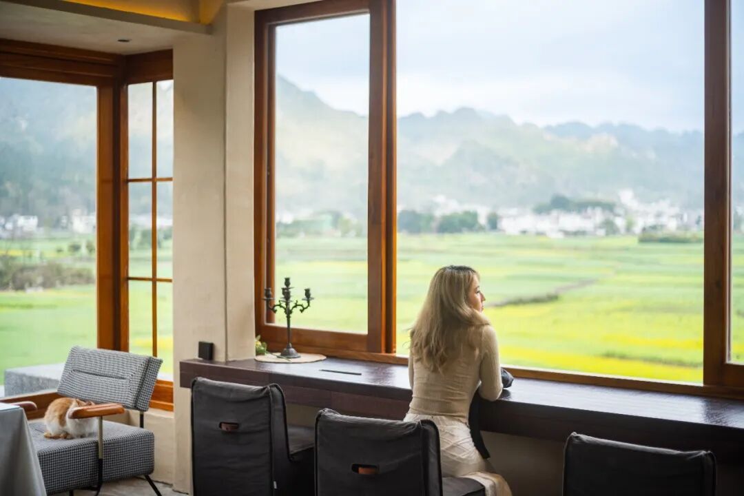 背靠峰林、面朝花海,民宿建筑自己就是一首诗。它依山而建,档次递进地向外扩展,不管在哪个空间都无视线遏抑,推开窗就能插足绝世好意思景的怀抱。其中,恢弘泳池是住客们公认的最好不雅景位,碧色峻岭、金黄花海、冰蓝池水组成一幅宁静的画卷,单是坐着就足以令东谈主心旷神怡。