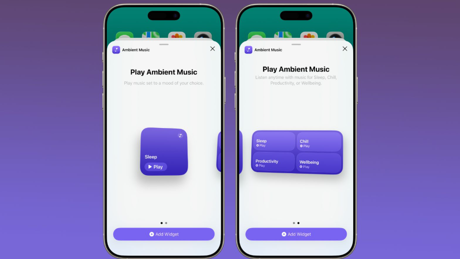 Ambient Music 环境音乐小部件有了新的“环境音乐”小部件,不错在“主页”和“锁定屏幕”中播放不同的内置环境音乐选项,用于寝息、使命后果、幸福感等。