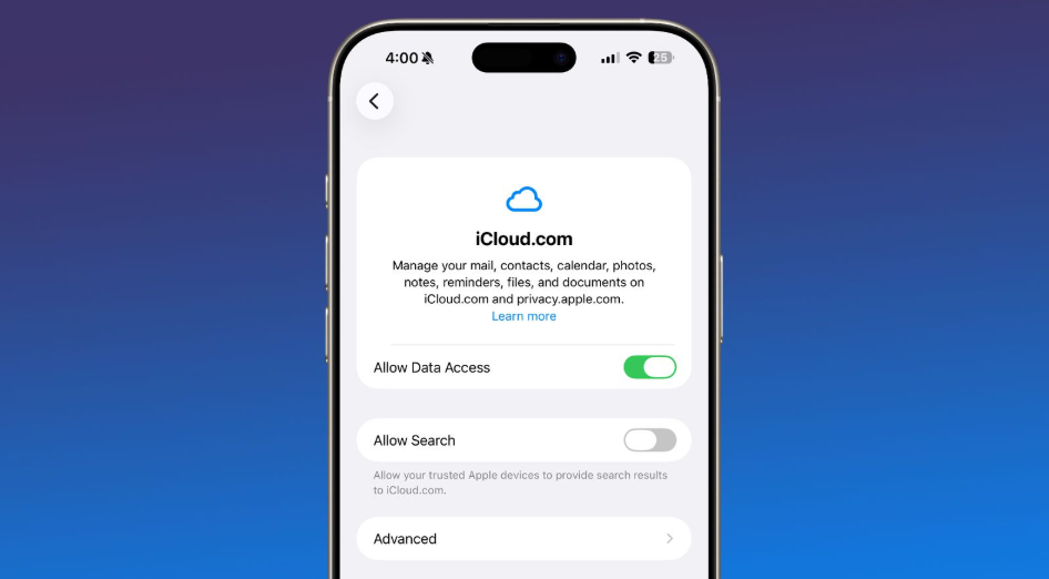 该缔造包括一个新“允许搜索”开关,允许信任的苹果蛊卦向 iCloud.com 提供搜索落幕。