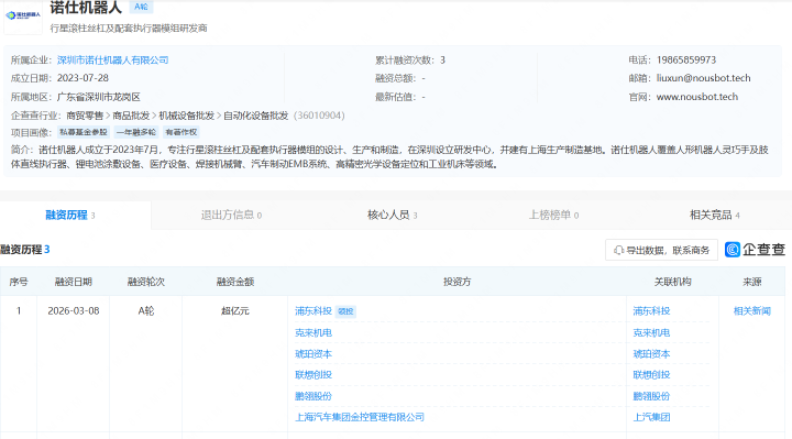 投资界(ID:pedaily2012)3月9日音信,诺仕机器东谈主(NOUSBOT)近日完成超亿元东谈主民币A轮融资。本轮融资由上海半导体产投领投,联思创投、琥珀本钱跟投,汽车产业链上市公司克来机电、鹏翎股份计策入股,老鼓舞上汽金控继续加注。资金将用于产能彭胀、本领研发迭代及商场拓展。