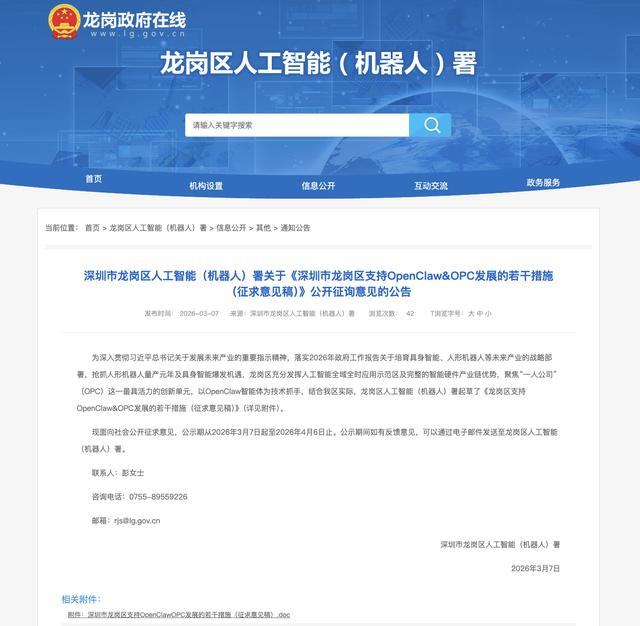 为抢执智能经济发展机遇,深圳市龙岗区于3月7日发布《深圳市龙岗区援助OpenClaw&OPC发展的多少门径(征求意见稿)》(以下简称:“AI龙虾十条”),拟以“零成本启动”为中枢亮点,面向全球智能体开发者和OPC(OnePersonCompany,一东谈主公司)创业者抛出橄榄枝,打造全球智能体创业首选地。