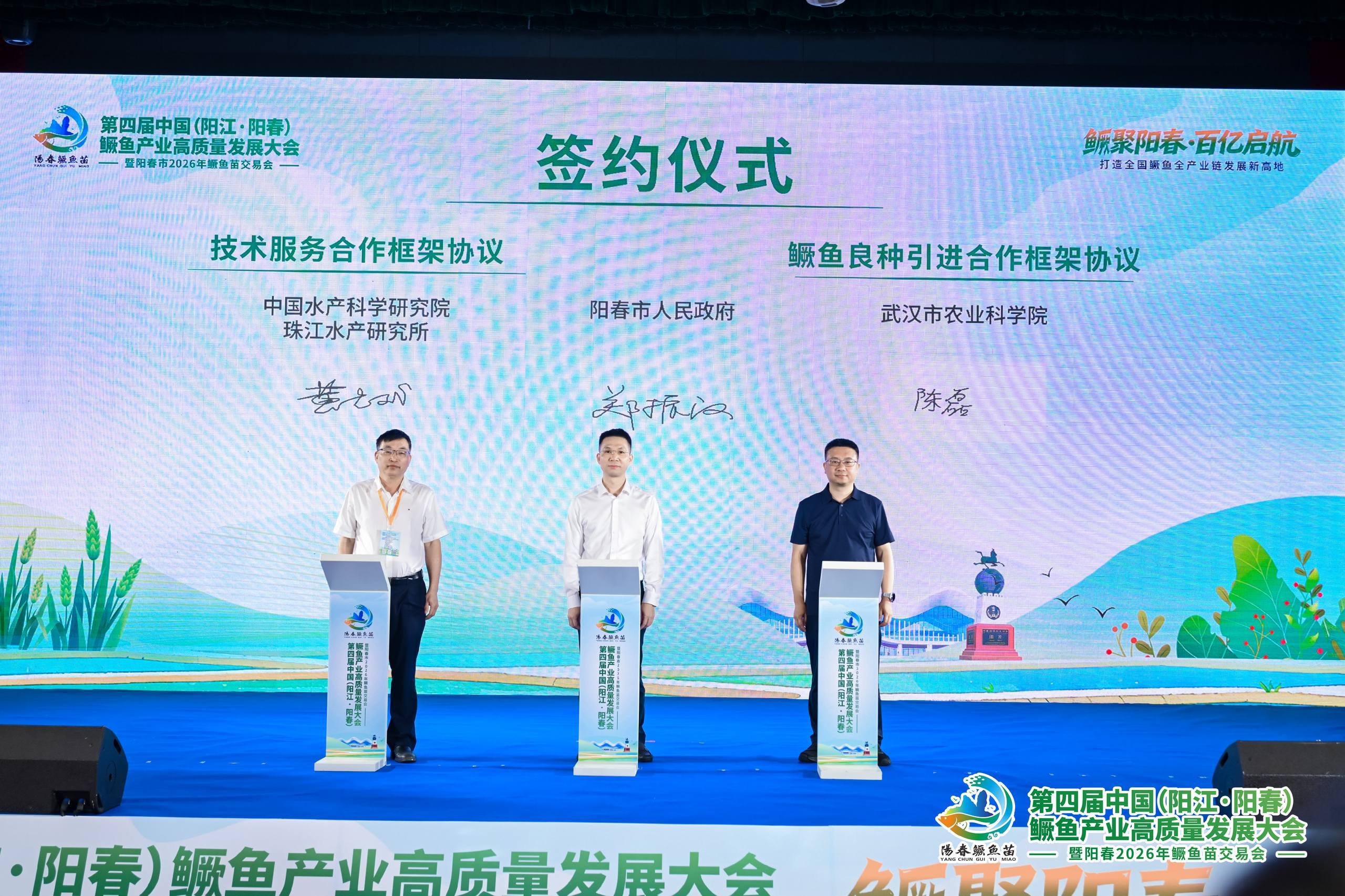 行动现场进行产业面目汇集签约。阳春市政府与中国水产科学征询院珠江水产征询所、武汉市农科院坚决时期职业与良种引进互助框架条约;与广东梁氏种业有限公司、民生寰宇渔仓(山东)生态科技有限公司坚决鳜鱼产业投资互助框架条约。阳春市鱼苗孵化产业协会及多家土产货苗企与省表里企业达成产销计谋互助,良种引进实行签约同步进行,触及“武农1号”“华康1号”“广春1号”“鼎鳜1号”等多个国度级、省级鳜鱼优良品种以及湖北鳜鱼原种场原种。据悉,包括现场签约,本日签约总金额觉得达到15亿元。